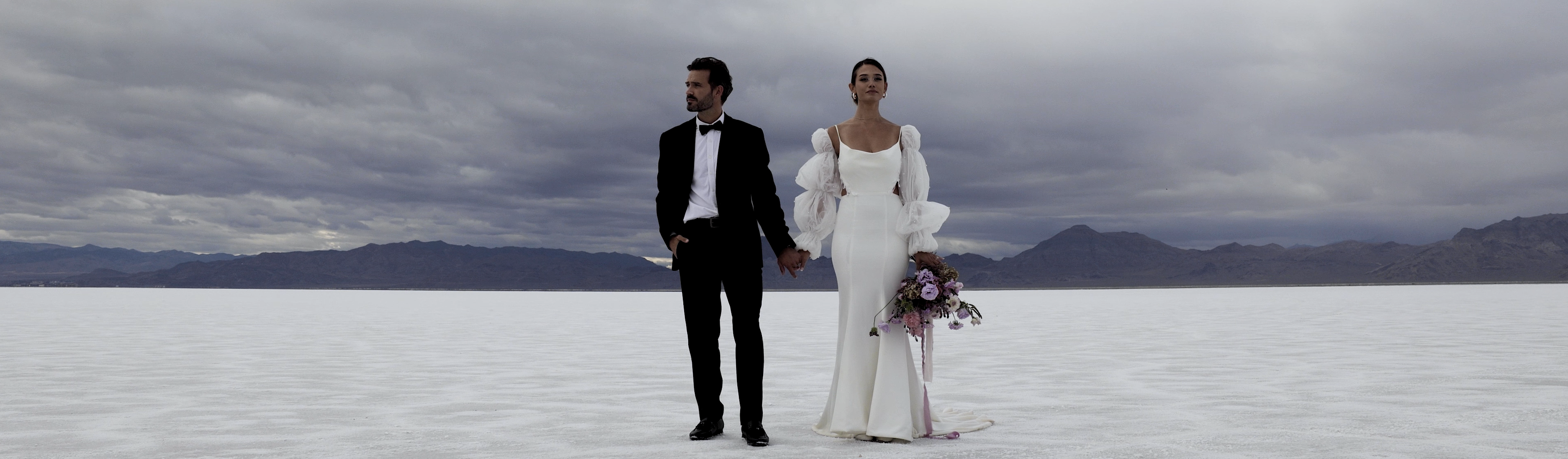 Garret & Chelsea’s elopement style wedding was filmed at The Salt Flats in Salt Lake City, Utah.